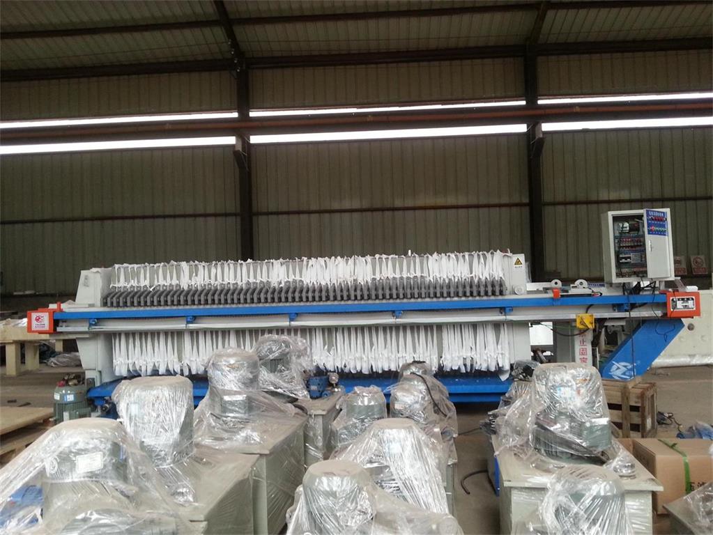 污泥濃縮消化后仍有95左右%至97%水分含量和體積(volume)仍然很大。廂式壓濾機濾板表面有麻點和凸臺,用于支撐濾布。濾板的中心和角落有通孔,組裝后形成完整的通道,可通過懸浮液、洗滌水和濾液引出。濾板兩側各有把手支撐在橫梁上,濾板由壓縮裝置壓縮。濾板之間的濾布起著密封作用。 污泥脫水可進一步去除污泥中的縫隙水和毛細水。 脫水后,污泥含水量可降至70%~80%,體積(volume()為原體積()volume)的1 / 10~1 / 四、有利于后續處理。 運輸和處理。 污泥機械脫水方法包括過濾脫水、離心脫水和壓榨脫水、真空過濾和壓力過濾; 離心脫水; 脫水是通過螺旋壓榨機(press)或輥(gǔn)壓機脫水。 壓力過濾和離心脫水是常用的。 污泥過濾脫水是基于過濾介質(決定性物質)兩側之間的壓差,迫使污泥水通過過濾介質形成過濾液,固體顆粒在介質上形成過濾出的餅泥從而達到污泥脫水的目的。